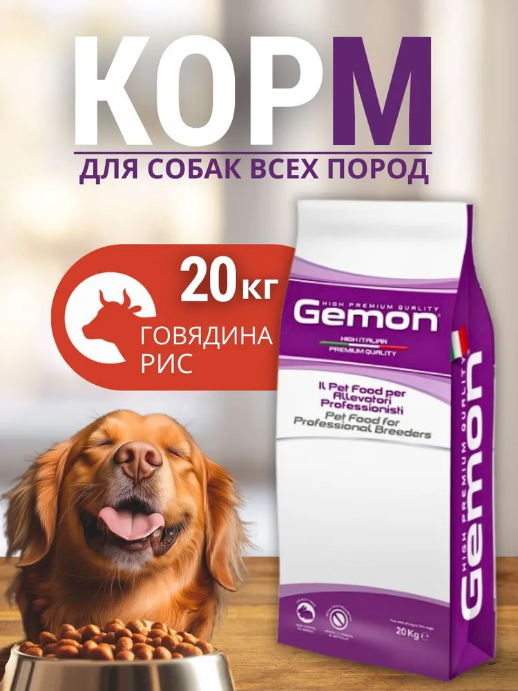 GEMON ALL BREEDS ADULT С ГОВЯДИНОЙ И РИСОМ — полнорационный корм для взрослых собак всех размеров.