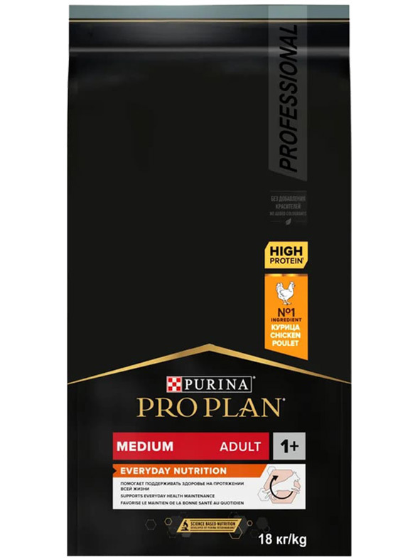 Здоровье, активность и привлекательный внешний вид собаки зависят в первую очередь от её питания. Подобрать правильный рацион для питомца довольно сложно, ведь корм должен быть не только питательным, но и содержать полезные добавки. Pro Plan Adult Dog Optibalance Medium - сухой корм для взрослых собак средних пород, с высоким содержанием курицы и риса. Комплекс представляет сочетание специально отобранных питательных веществ для собак разных размеров и телосложения, который поддерживает их особые потребности и помогает оставаться в отличном состоянии. Сочетание основных питательных веществ, которое помогает поддерживать здоровье суставов вашей собаки при активном образе жизни. Сбалансированное содержание омега-3 и 6 жирных кислот, повышенный уровень микроэлементов и антиоксидантов способствует нормальному функционированию организма питомца.